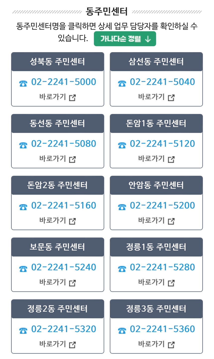 서울 성북구 동 주민센터 바로가기
