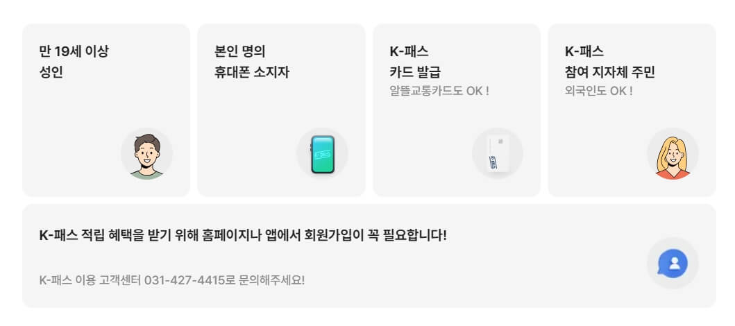 10개 카드사 중 원하는 곳에서 카드 발급 신청 후 K패스 공식 앱 또는 홈페이지를 통해 카드번호를 등록합니다.